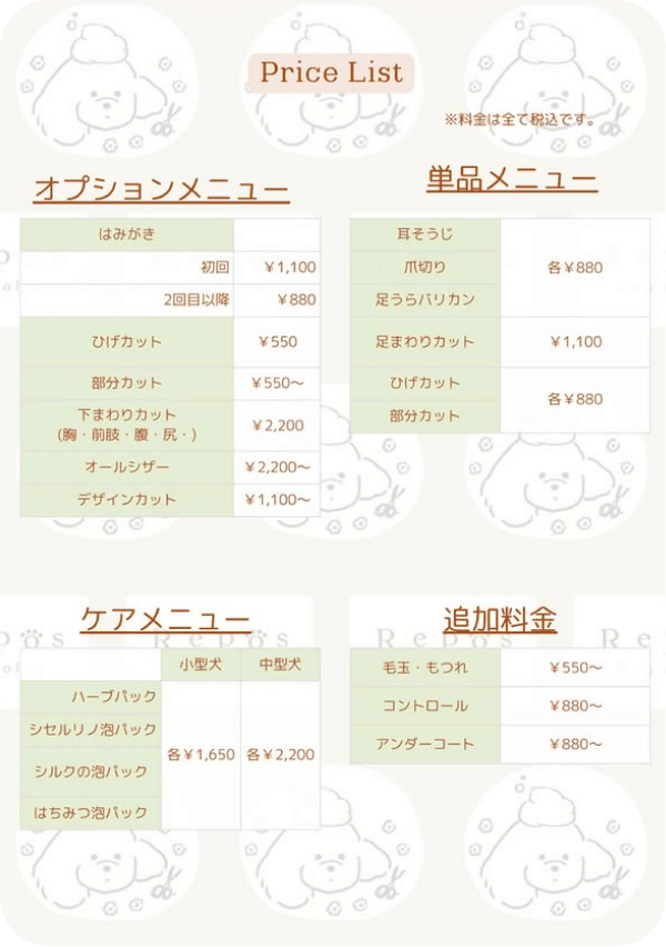 飼い主様にとって大切な愛犬を預けるのは不安だと思います。新しいサロンだとなおさらですよね。そんな不安を取り除けるよう1頭1頭コミュニケーションをとりながら無理のないお手入れを心がけその子にあったスタイルで身体の中からと外からのサポートをしていきます!楽しいドッグライフのお手伝いをさせていただければなと思います。