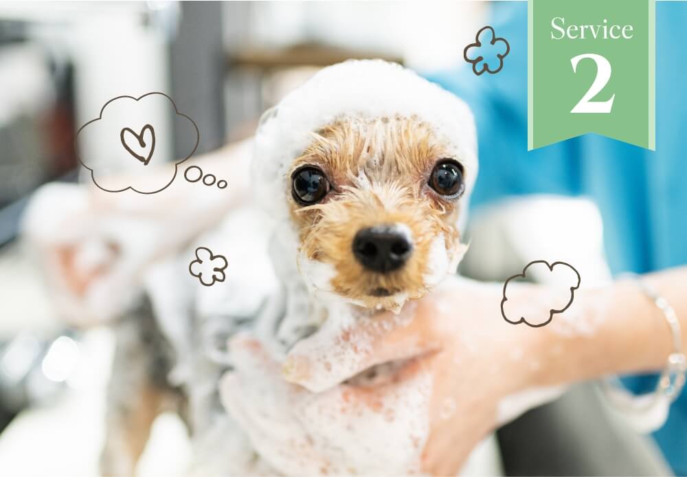 毛質・体質・性格・生活スタイルなどを丁寧にヒアリングし、わんちゃんに合ったシャンプー選びやカットスタイルをご提案します。飼い主様のご希望と照らし合わせながら、その子らしさを大切にした仕上がりを心がけています。「扱いやすい」「似合う」「可愛い」を両立したケアをご提供します。